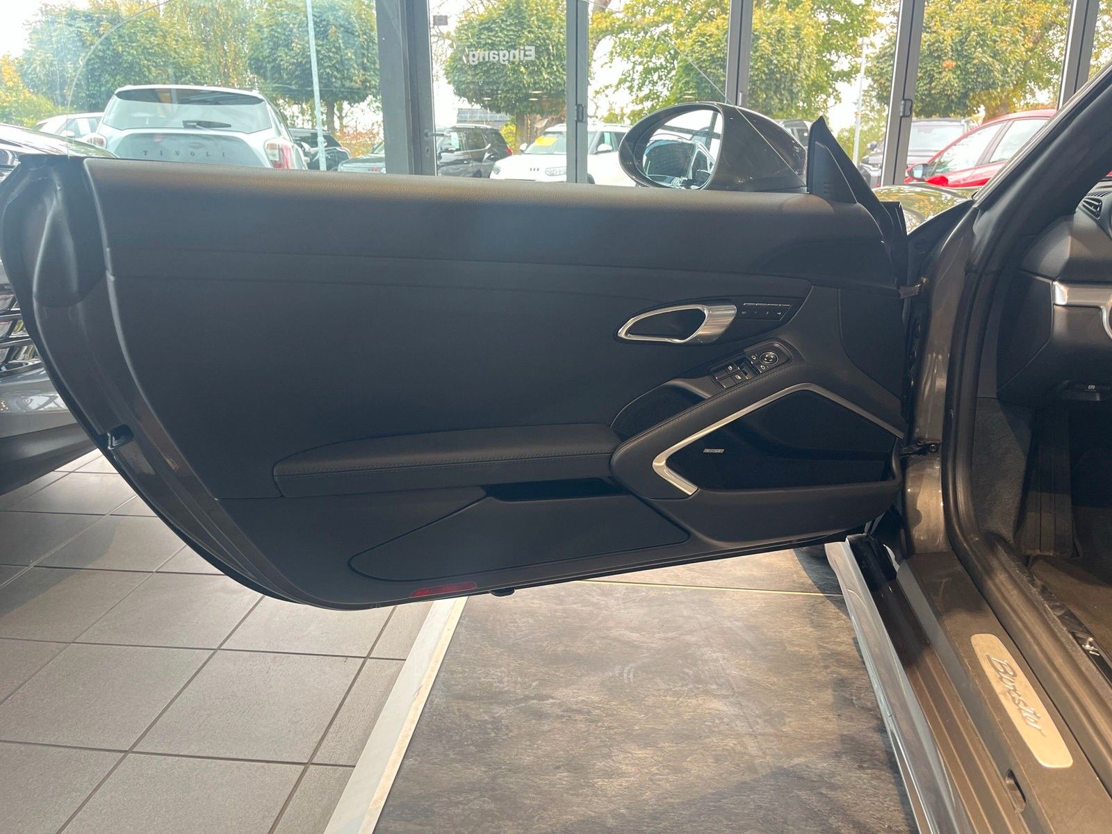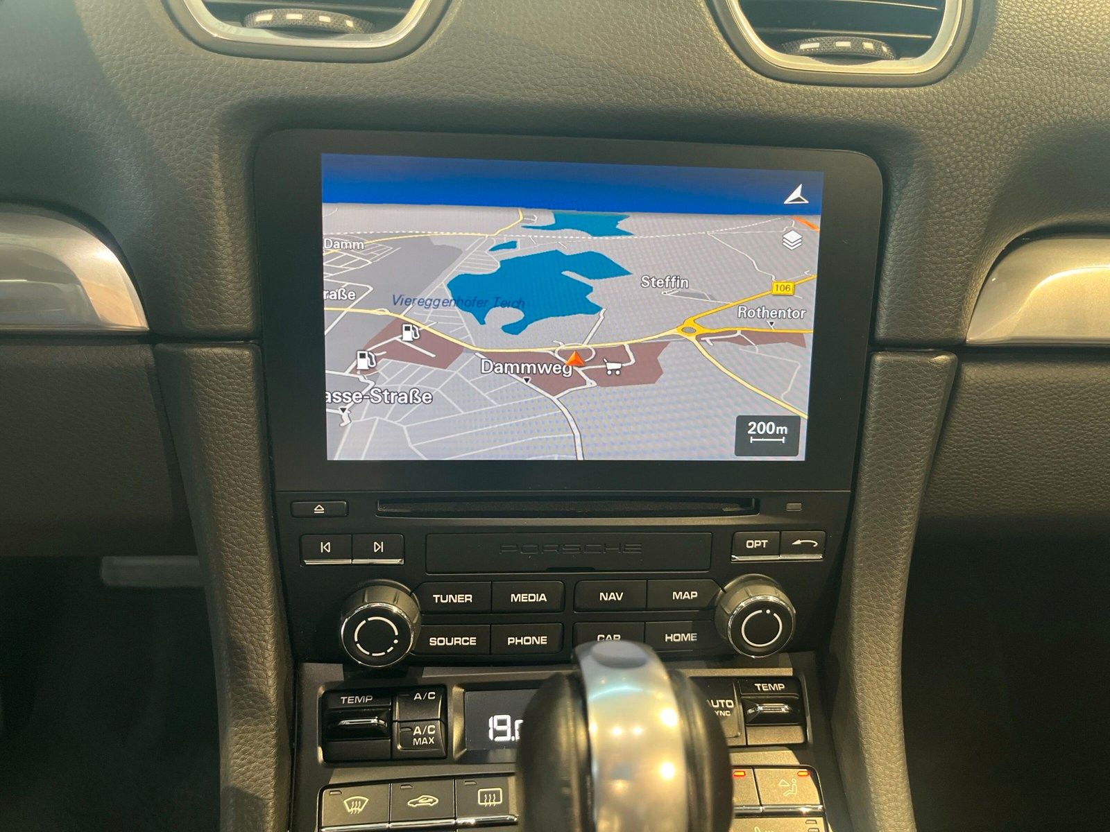 Außen-/Innenspiegel mit Abblendautomatik und Regensensor, Bi-Xenon-Scheinwerfer inkl. Porsche Dynamic Light System (PDLS), Fahrassistenz-System: Park-Assistent vorn und hinten, Fahrassistenz-System: Spurwechselassistent, Fahrassistenz-System: Verkehrszeichenerkennung, Frontscheibe mit Bandfilter oben, Innenraumlicht-Paket / Licht-Design-Paket, Klimaautomatik 2-Zonen, Leder-Paket, LM-Felgen vorn/hinten: 8x19 / 10x19 (Boxster S Rad), Metallic-Lackierung, Navigationsmodul für Porsche Communications Management (PCM), Porsche Active Suspension Management (PASM), Schriftzug Modellreihe, Sitzheizung vorn, Sound-System BOSE, Sport-Auspuffanlage, Sportsitze vollelektrisch (14-Wege) inkl. Memory-Paket