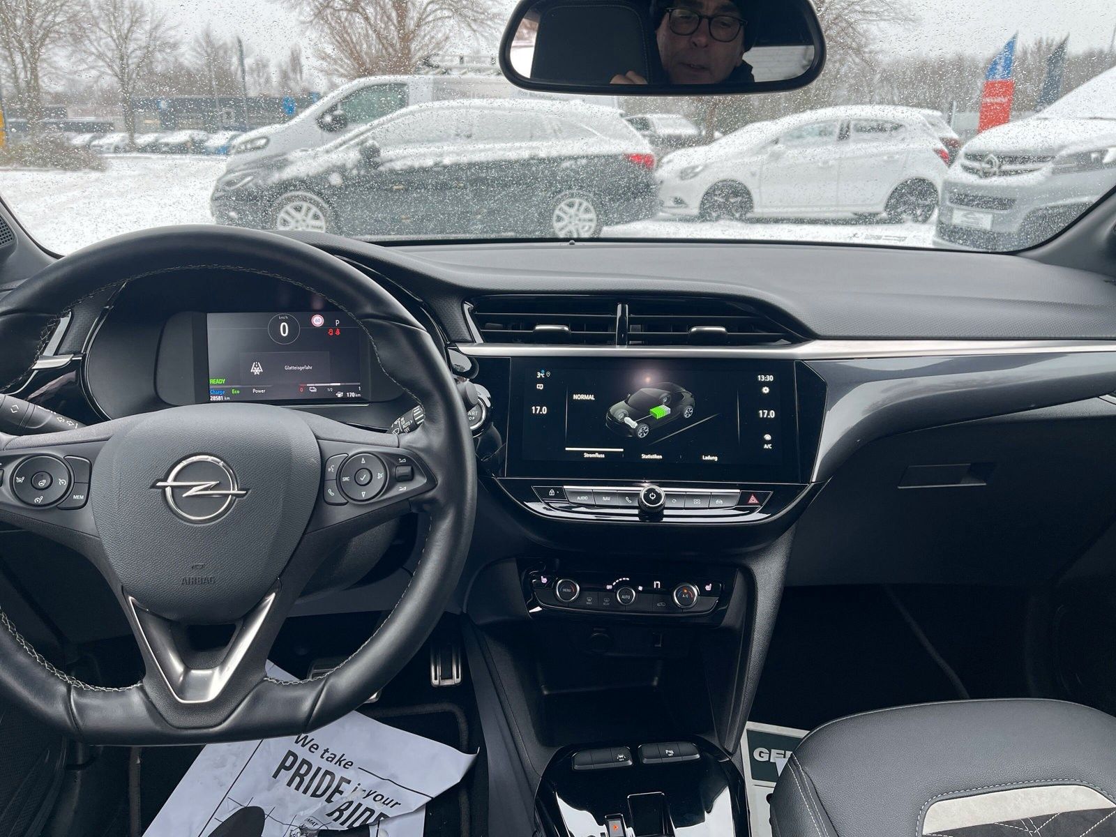 6 Lautsprecher, Airbag Fahrer-/Beifahrerseite, Akustischer Fußgängerschutz (Außensound), B-Säulen schwarz Hochglanz (außen), Bordcomputer, Bremsassistent, DAB-Tuner (Radioempfang digital), Dach Kontrast-Lackierung, Dachhimmel schwarz, Elektrische Schnellheizung (Quickheat), Elektrofahrzeug, Elektromotor 100 kW (cont. 57 kW), Elektron. Stabilitäts-Programm Plus (ESP), Fahrassistenz-System: Berganfahr-Assistent (HSA, Hill Start Assist), Fahrassistenz-System: Müdigkeitserkennungs-Sensor, Fahrassistenz-System: Spurhalteassistent, Fahrassistenz-System: Verkehrszeichenerkennung, Farbdisplay (7 Zoll), Fensterheber elektrisch vorn + hinten, Fensterheber vorn elektr. mit Einklemmschutz, Fernbedienung zur Aktivierung der Heizung/Klimaanlage, Feststellbremse elektrisch, Gepäckraumbeleuchtung (LED), Heckleuchten LED, Heckscheibenwischer, Innenausstattung: Dekorleisten Rot, Isofix-Aufnahmen für Kindersitz an Beifahrersitz, Isofix-Aufnahmen für Kindersitz an Rücksitz, Karosserie: 5-türig, Klimaautomatik, Kopf-Airbag-System, Ladekabel mit Schukostecker (Mode 2), Lenkrad (Sport/Leder - 3-Speichen, unten abgeflacht) mit Multifunktion, Lenksäule (Lenkrad) verstellbar, Leseleuchten vorn (2), Motor Starterknopf, Nebelschlussleuchte, Opel Connect, Pedale Aluminium, Reifen-Reparaturkit, Rücksitzbank geteilt/klappbar (60:40), Seitenairbag vorn, Sicht-Paket, Sitzbezug / Polsterung: Stoff / Ledernachbildung, Sportsitze vorn, Stoßfänger Sport-Design, Stoßfänger Wagenfarbe, Türgriffe außen Wagenfarbe, Türgriffe innen verchromt, Warnanlage für Sicherheitsgurt, Beifahrerseite, Warnanlage für Sicherheitsgurt, Fahrerseite, Warnanlage für Sicherheitsgurte hinten, Wärmepumpe zur Reichweitenoptimierung